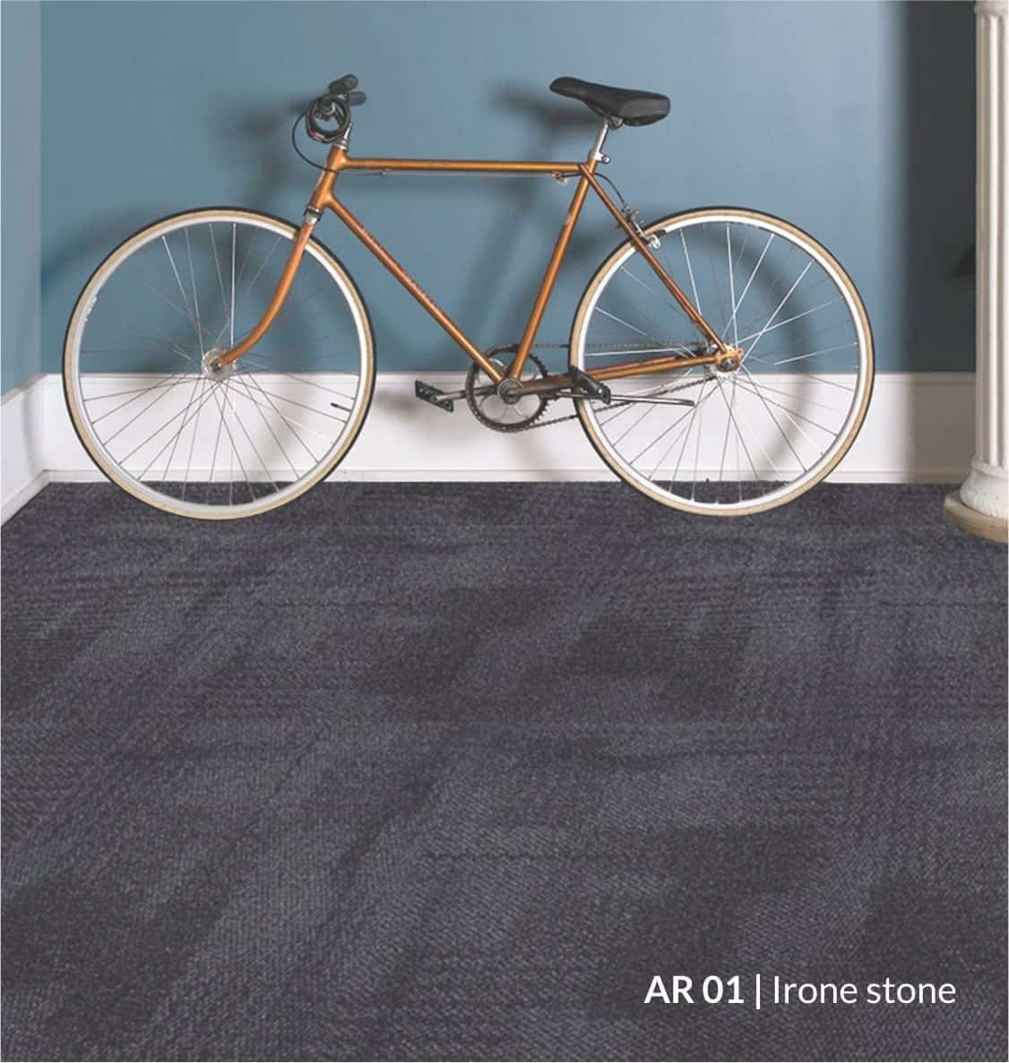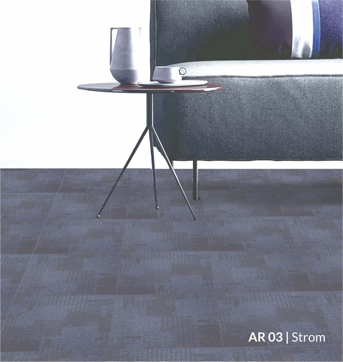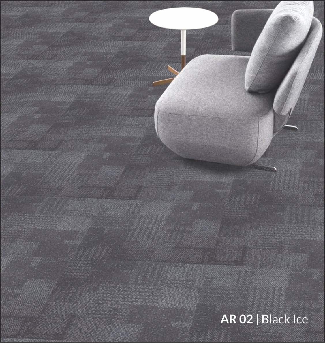 Donaire ARTE carpet tiles are crafted with 100% solution-dyed nylon and a multi-level modular design for contemporary texture and durable performance. Featuring a strong PVC + fiberglass backing and available in attractive shades like Iron Stone, Black Ice, Strom, and Jett, the ARTE range enhances both residential and commercial interiors with lasting comfort and visual appeal.