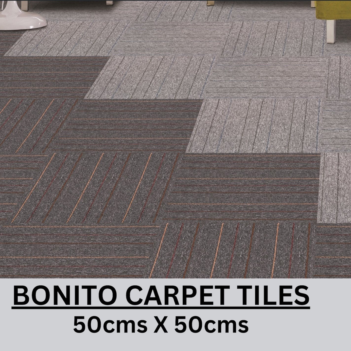 The carpet tiles are manufactured using a 1/10th gauge, providing a tight, dense surface for better durability.